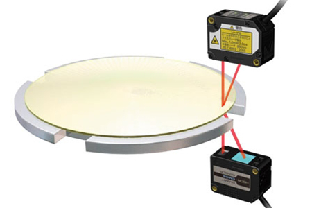 Karşılıklı çift kafa lazer mesafe sensörü ile hatta lastik kalınlık ölçümü